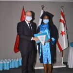 Törende Havacılık ve Uzay Bilimleri Fakültesi Havacılık Yönetimi Bölümünden Agnes Magaya’ya diploması Cumhurbaşkanı Ersin Tatar tarafından takdim edilirken Eğitim Fakültesi Özel Eğitim Öğretmenliği Bölümünden Nafiz Orul ise diplomasını Girne Üniversitesi Rektörü Prof. Dr. İlkay Salihoğlu’ndan teslim aldı.