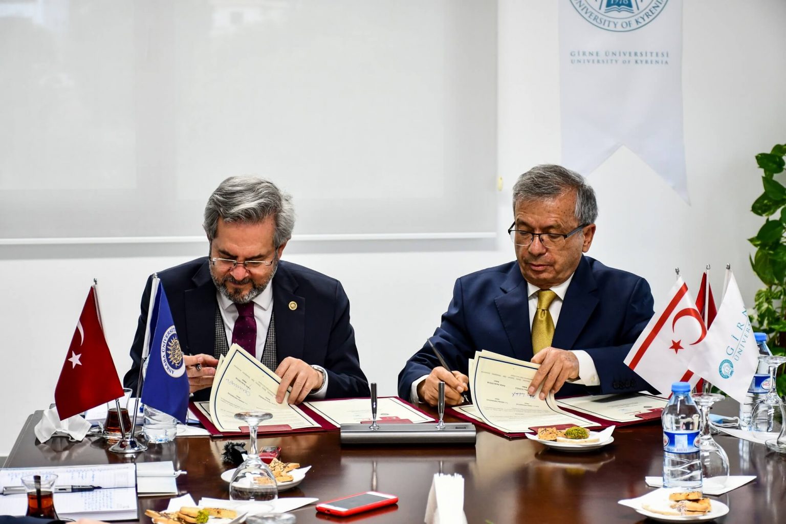 According to the statement made by the University of Kyrenia Press and Public Relations Directorate, Ankara University Rector Prof. Dr. Necdet Ünüvar, accompanied by the Vice Rector Prof. Dr. Hasan Serdar Öztürk, Dean of the Faculty of Dentistry Prof. Dr. Kaan Orhan, Dean of the Faculty of Veterinary Medicine Prof. Dr. Ender Yarsan, Advisor to the Rector Ümmet Artuç, and Protocol Director Neriman Kantarcı while on behalf of University of Kyrenia. Porf. Dr. İlkay Salihoğlu, Vice Rector and Dean of Faculty of Medicine Prof. Dr. Rüveyde Bundak, Vice Rector and Dean of the Faculty of Education Prof. Dr. Gökmen Dağlı, Dean of the Faculty of Dentistry Prof. Dr. Serap Çetiner and Secretary General Fehmi Tokay were present.